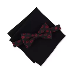 Best Pirce 💯 Bar III Men’s Lips Bow Tie & Pocket Square Set, Created For Macy’s Black 👏