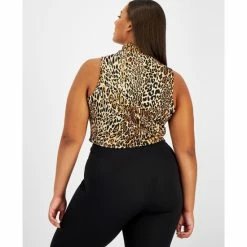 Budget ๐งจ Bar III Trendy Plus Size Sculpting Mock-Neck Top, Created For Macy’s Charm Cheetah โญ