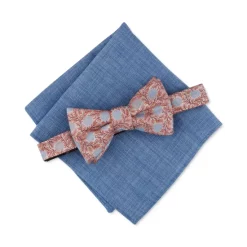 Cheapest 👏 Bar III Men’s Wiles Floral Bow Tie & Pocket Square Set, Created For Macy’s Cognac ✔️