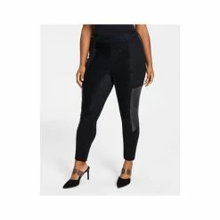 Buy ๐งจ Bar III Plus Size Mixed-Media Leggings, Created For Macy’s Deep Black โค๏ธ
