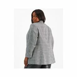 Hot Sale 🛒 Bar III Plus Size Plaid Faux Double-Breasted Blazer, Created For Macy’s Black/white ⭐