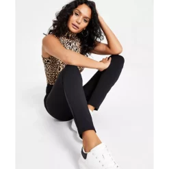Hot Sale β€οΈ Bar III Petite Side-Studded Leggings, Created For Macy’s Deep Black π
